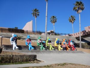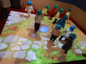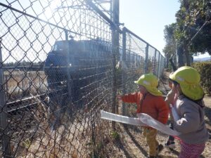 園庭にお友達が座っているのを見て、「バスみたいだね~!」と言...