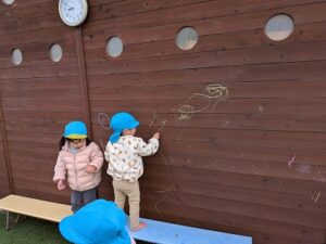 あーすくらすさんが、テラスで、のびのび~と自由に描いていまし...