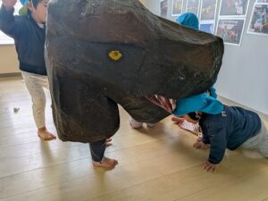 大きな恐竜に食べられちゃった!?でも、よ~く見ると、恐竜の首...
