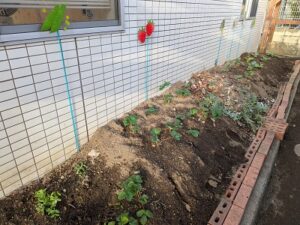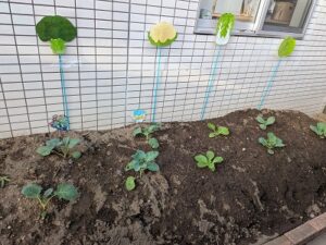 • 園庭のこすもふぁーむに、野菜を植えましたよ~!