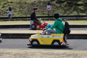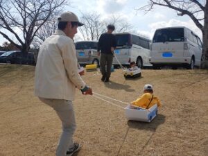 天気予報とにらめっこの2週間でしたが…今日も無事に快晴の中、親子遠足を開催することができました!『様々な乗り物に家族で乗る&乗り物や雄大な景色をバックにたくさんの思い出を作ろう!』を遠足のテーマに掲げ、家族で、電車、大型観光バス、マイクロバス、観音池公園のリフト&スライダー、ゴーカートに観覧車、職員手作りのダンボールそり…などなど、たくさんの乗り物に家族みんなで乗って楽しみました☆家族同士で写真を撮り合うというミッションもあり、子ども達だけでなく、ご家族同士の交流もあり、とても微笑ましかったです。笑顔溢れる親子遠足となりました!保護者の皆様、ご参加・ご協力ありがとうございました。