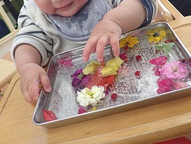 すたーくらすの子どもたち、氷にそっと触ってみましたよ!思っていた以上に、ヒンヤ~リとしたようで、慌てて手をパッと離しているお友達もいましたが、でも、また触ってみたくて…そーっと手を伸ばしてチャレンジしたりして、冷たくて固い。そしてキレイな氷の感触を楽しんでいましたよ(^▽^)/