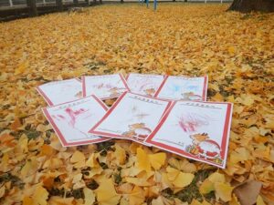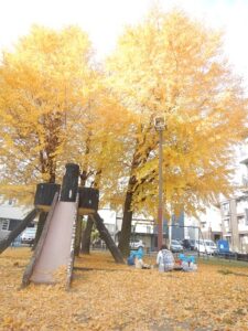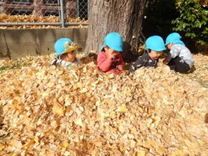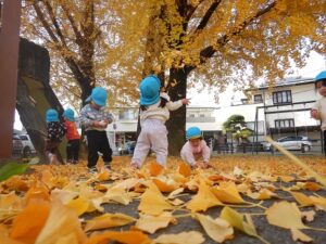 今日は、近くの公園のイチョウの木の下で、サンタさんへお手紙を描いてきたようですよ☆あーすくらすの子ども達は、思いが届くように…と、好きなクレヨンの色を選びながらお手紙を一生懸命に描いていて可愛らしかったです(^▽^)/サンタさん大忙しな季節がやってきましたね…☆葉っぱ遊びも豪快に楽しんできたようです!