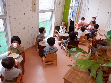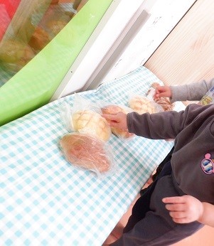 先日のブログでもご紹介した、子どもたちの給食の時間にopenしたパン屋さん。今日は、2号店(2回目)をopenさせましたよ!前回とはお店の配置を変え、カフェが併設されたパン屋さんにしてみました。子どもたちも、楽しそうに自分の好きなパンを選び、小鳥のさえずりのBGMが流れる雰囲気の中、まるでカフェにいる気分♪で給食の時間を楽しみました。