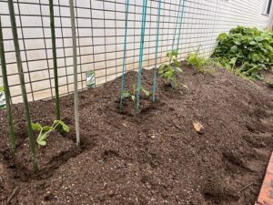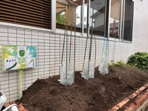 今年度も園の畑に新しい野菜たちを植えましたよ!昨年度の玉ねぎは大成功だったし、いちごもどんどん赤くなって食べごろを迎えています。新しく植えた、きゅうり・ピーマン・九条ネギ!大きくなるかな~?楽しみです(^▽^)/