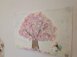 保育士『清』さんの素敵な作品をご紹介!和紙に桜の花びらを1枚1枚丁寧に貼って作ってらっしゃいました!廊下に飾ってありますよ~(^▽^)/